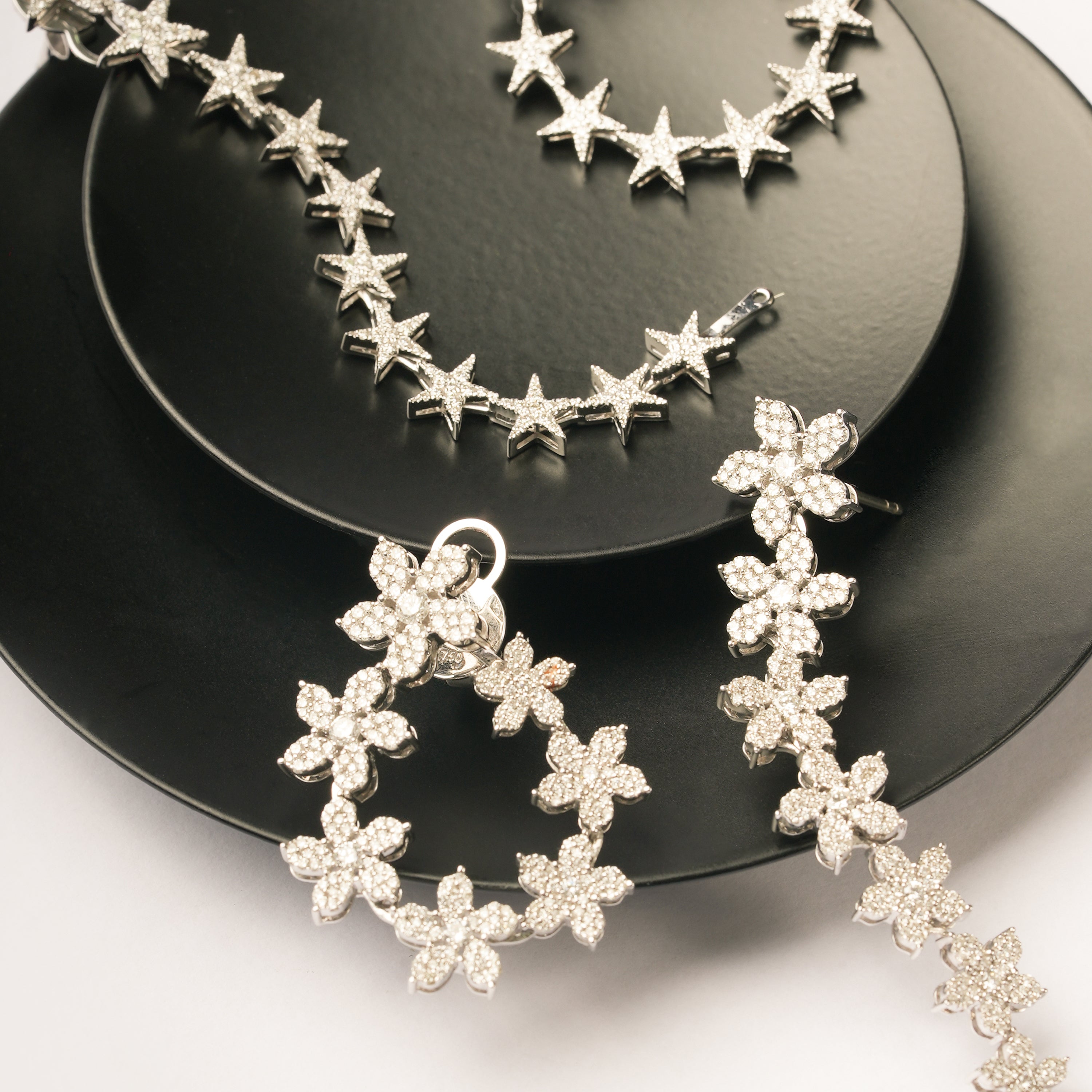 Disclaimer: Our diamond jewelry pieces are 100% natural. Diamond’s clarity and color are ranging VS and G-J color respectively. Moreover, total diamond’s carat and the number of diamonds are estimated only since stone’s density and depth may vary.