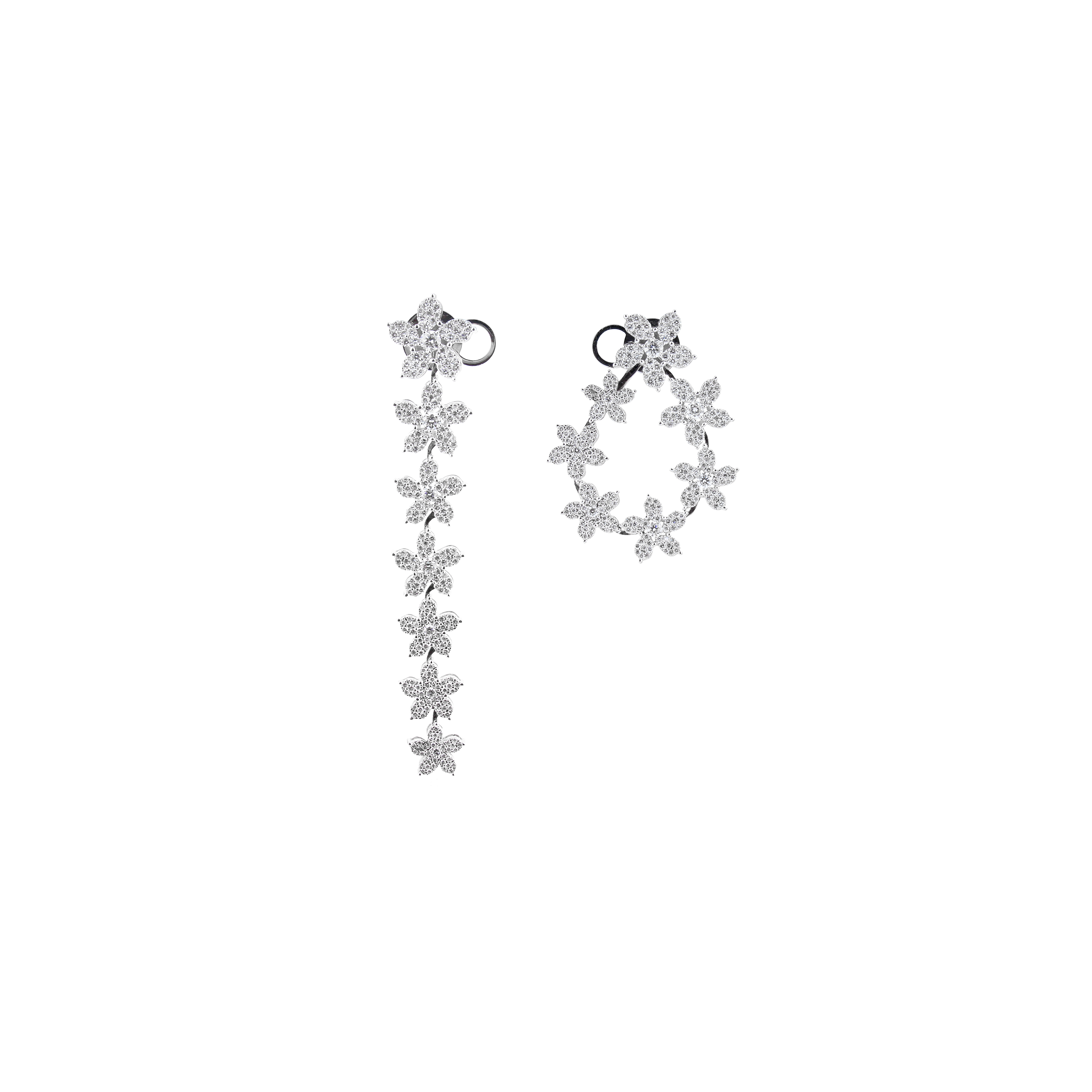 Two-Way Wear Bloom Diamond Dangle C-Hoops Earring
